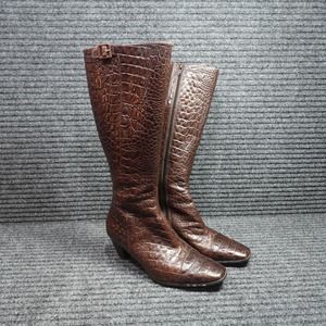 ECCO Boots Womens 9.5 Brown Croc Crocodile Zip Knee high Heels
