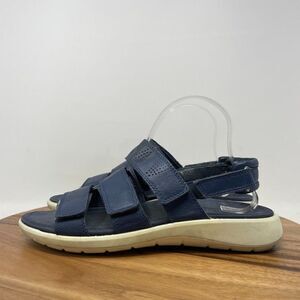 ECCO Breeze Leather Ankle 3 Straps Flat Strappy Sandals Blue Women's Size EU 41