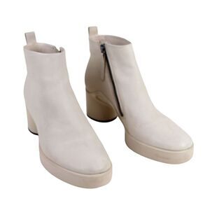 ECCO CREAM WHITE GENUINE LEATHER MID HEEL PLATFORM ZIP SIDE ANKLE BOOTS Sz 10.5