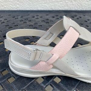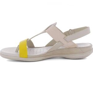 ECCO Cream, Yellow & Pink Flash Toe-Post Sandal. Size 8-8.5 (39) New With Tags! (NWT) Interlocking straps add undeniable sporty style to this breathable, comfortable and durable sandal that's a versatile must-have. Ships from a smoke and pet free home. Comes with Box.