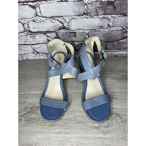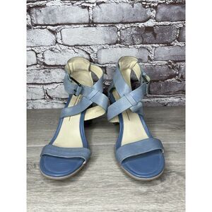 ECCO DANISH DESIGN Blue Leather Ankle Strappy Stacked Heel Sandals Women Sz 40EU