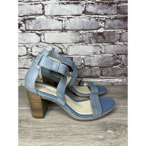 Selling ECCO DANISH DESIGN Blue Leather Ankle Strappy Stacked Heel Sandals Women Sz 40EU/9.5M US