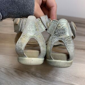ECCO Damara Criss Cross Sandals Gravel Metallic Leather EU 37 Gold Silver US 6