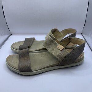ECCO Damara Women’s 40 US 9-9.5 Pewter Metallic Elastic & Leather Sandals