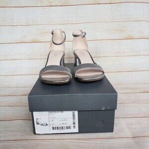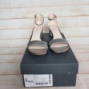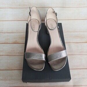 ECCO Elevate 45 Block Ankle Strap Leather Sandals in Metallic Aluminum Silver