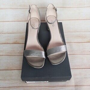 ECCO Elevate 45 Block Ankle Strap Leather Open Toe Sandals in Metallic Aluminum Silver