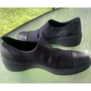 ECCO Gore-Tex Slip On Shoes Women's Size 8 EU 39 Wide Width Black Wedge