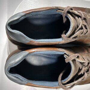 ECCO Mens Shoes Size 12 Suede Leather Sneakers Comfort Casual Brown Blue Lace Up