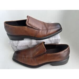 ECCO Minneapolis Slip On Leather Loafers Square Toe Comfort Shoes Brown Size 8