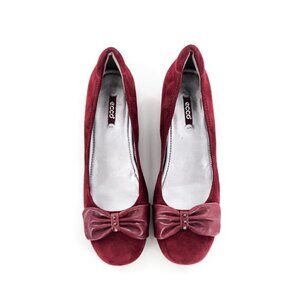 ECCO NWD FLAWED Burgundy Suede Flats With Studded Leather Bow