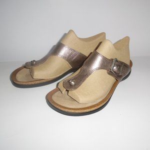 ECCO Passion Warm Grey Metallic Thong Slip Casual Comfy Leather Sandal