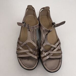 ECCO Sandal Size 6.5 EU 37 Comfort Metallic Gold Leather Gladiator T Strap