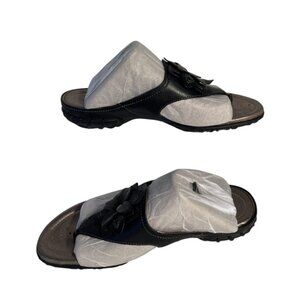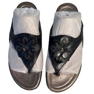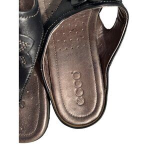 ECCO Sandals Womens Size 6.5 US 37 EU Black Leather Thong Slide Flower Slip On