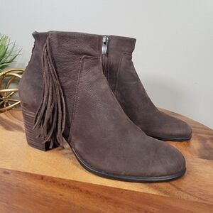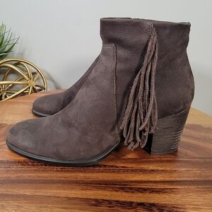 Gorgeous chocolate Brown soft nubuck leather boots with fringe on side.