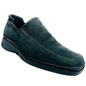 ECCO Shoes Suede Chunk Heel Square Toe Black Twist 6 Womens Slip-On Loafers