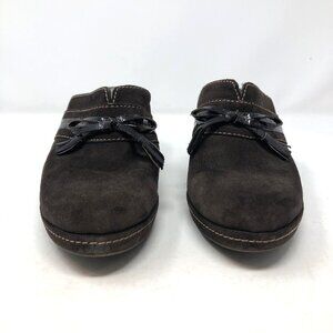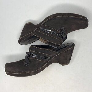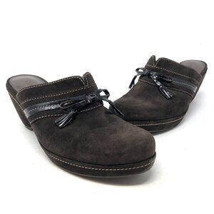 ECCO Shoes Women 40 Brown Nubuck Suede Tassel Bow Mule Clog Heel Slip On Comfort