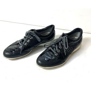 ECCO Shoes Womens Size EU 37 US 6.5 Casual Oxford Lace Up Black Metallic Leather