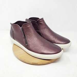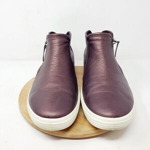 ECCO Soft 7 Low Bootie Women 42 Purple Metallic Leather Zip Sneaker Comfort Shoe