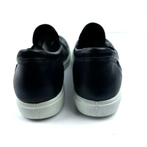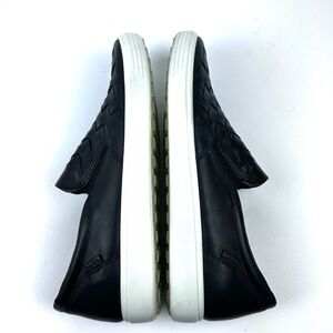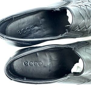 ECCO Soft 7 Shoes Size 10 Wide Black Leather Weave Slip On Loafer Flat Womens