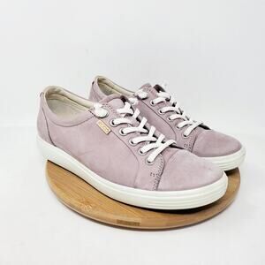 ECCO Soft 7 Shoes Womens 38 Lavender Nubuck Leather Slip On Comfort Sneaker