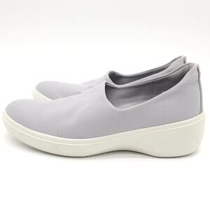 ECCO Soft 7 (Womens Size 9-9.5) Wedge Slip-On Sneakers Shoes Gray White Loafers