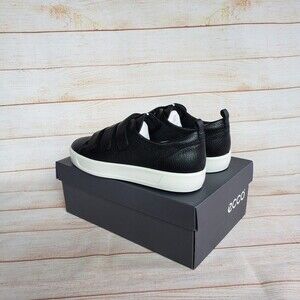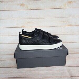 ECCO Soft 8 Ladies Leather Walking Comfortable Sneaker Shoes w/Velcro Closure in Black