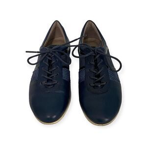 ECCO WOMAN SHOES SNEAKERS BLUE LEATHER ATHLETIC SIZE 35/5