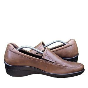 ECCO WOMEN'S GENUINE LEATHER SLIP ON WEDGE LOAFER SHOE BROWN SIZE 40 EU/US 9-9.5