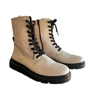 ECCO WOMEN'S NOUVELLE LACE BOOT LimeStone Side Zip Leather EU 41 US 10/10.5