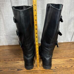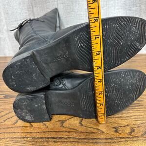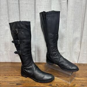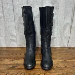 ECCO Women Black Leather Tall Knee High Riding Boots US 9-9.5 (40) Triple Buckle