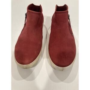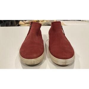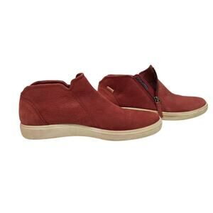 ECCO Women Burgundy Red Soft 7 Nubuck Zip Ankle Bootie Sz 41 Extra Wide Sneaker