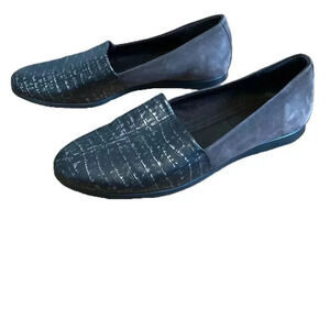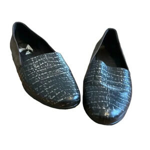 ECCO Womens Black Crocodile Pattern Two Tone Leather Loafers Flats Size 39