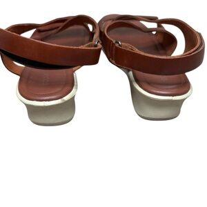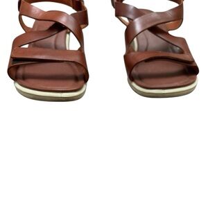 ECCO Women's Felicia Cross Wedge Sandal Size 10.5 Stylish chestnut leather sandals with a crisscross design. Comfortable and versatile.