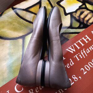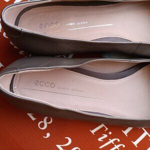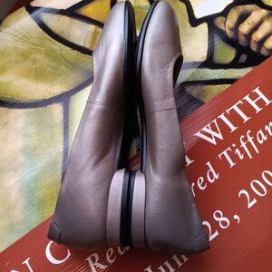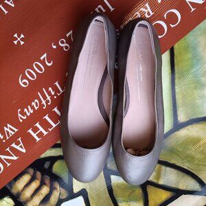 ECCO Women's Grey Leather Round Toe Flats. Beautiful fall 2025 neutral grey to wear with other neutrals or vibrant hues such as plum and aqua blue.