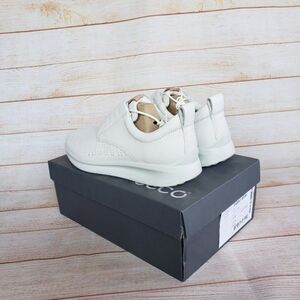 ECCO Women's Leather Aquet Perforated Tie Oxford Sneaker Walking Comfortable Shoes in White