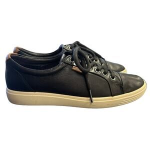ECCO Womens Soft VII Leather Lace-Up Sneakers Black Size 38 EUR 7 US