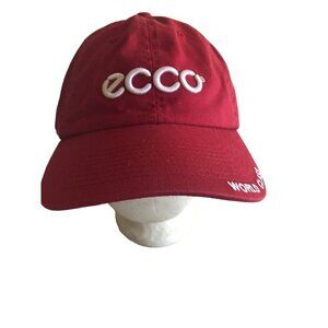 ECCO World Class Red Golf Hat Cap Strap Back Adjustable White Logo