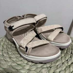 ECCO Yucatan Coast Sport Cream Ivory Nubuck Strappy Outdoor Chunky Dad Sandals