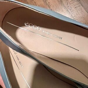 Shoes are in excellent condition. They do not look used. Heel is about 2”.