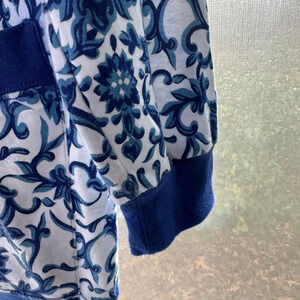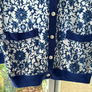 ECCOBAY S blue and white floral design cardigan w/white flower full button front