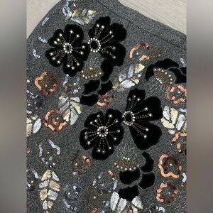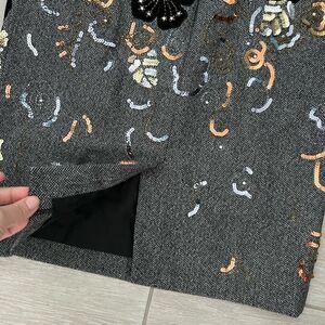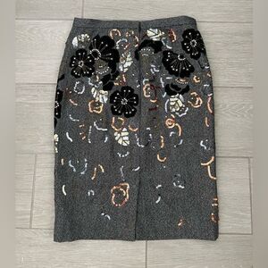 ECCOCI Gray 100% wool beaded sequin embroidered pencil skirt size 8