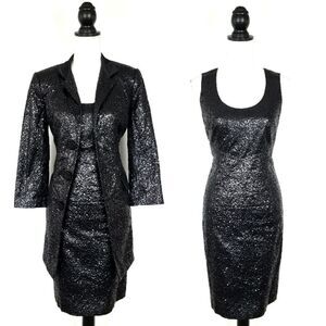 ECCOCI Black Sequin Sheath Dress & Jacket 2 Piece Matching Set Size 4