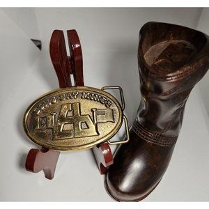 This listing is for a collectible Brass belt Buckle for the Echo Bay Mines. Depicts the EB along with the flag for both Canada and USA. This item will come in a gift box so it will be ready for your gift giving.
