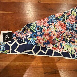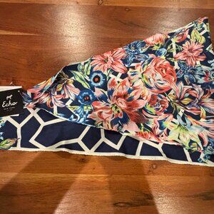 ECHO New York Scarf Floral/Geometric Design Triangle, 100% Silk NWT