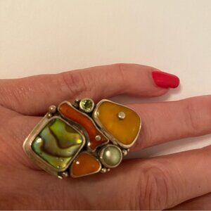 ECHO OF THE DREAMER RING STERLING SILVER MULTI COLOR STONES SIZE 7 15.9g