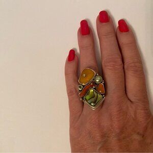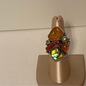 ECHO OF THE DREAMER WOMENS JEWELRY RING RED ORANGE GREEN YELLOW STONES 15.9g SIZE 7