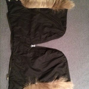 Black. Real fur trim. Hood detachable. Never worn. No tags.