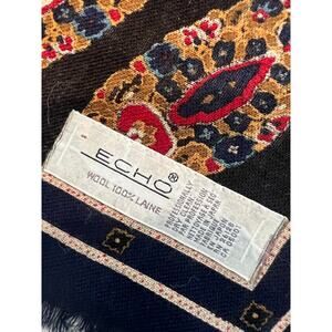 ECHO Rare Vintage 100% Wool Women’s Scarf Dark Green Gold 29" x 30" JP