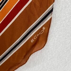 ECHO Scarf Womens Silk Sash Striped Skinny Rectangle Brown 5" x 68"