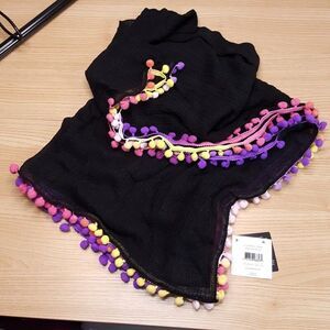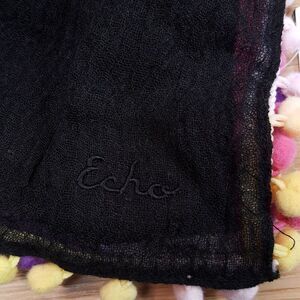 ECHO Scarf Womens Black Oversized Rectangle Pom Pom Lightweight Wrap $69 29x74